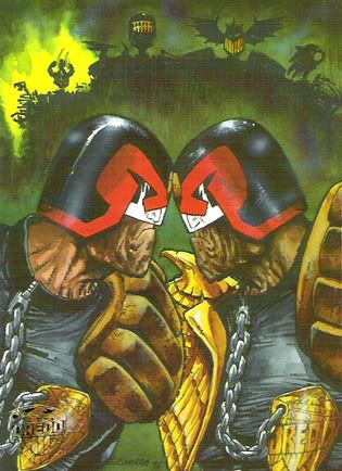 I was cleaning out today when I came across my treasured old Judge Dredd trading card sets. I loved reverting to my childhhood when these were out (it was like collecting Return of the Jedi stickers all over again!) and look forward to the new set coming this year.