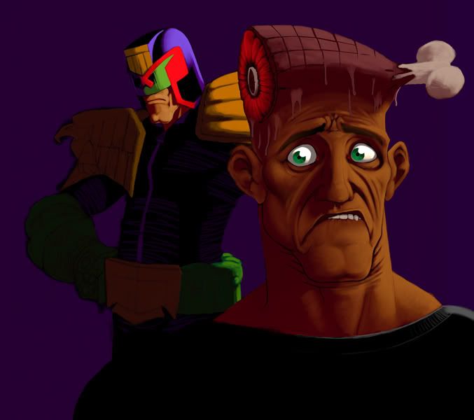 Pretty good .Wooly, although your first Dredd appears to be wearing a fetching pair of Y-fronts.