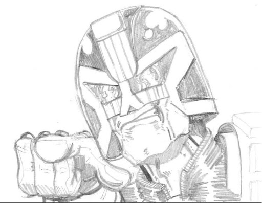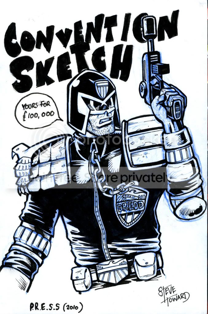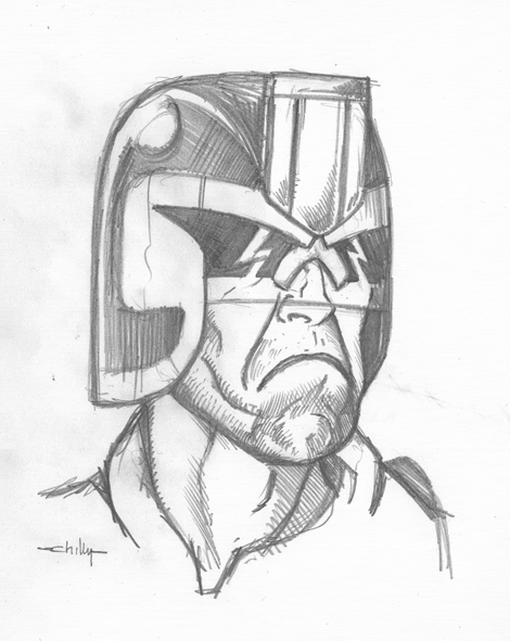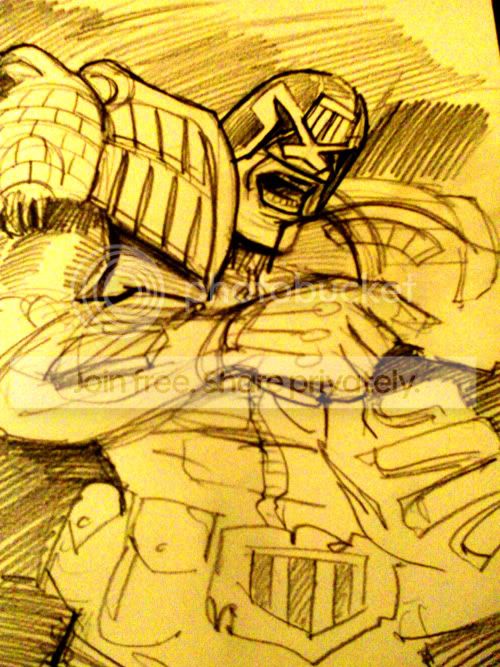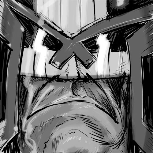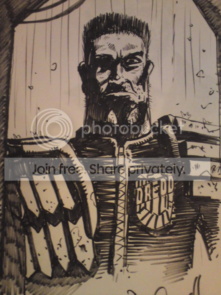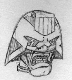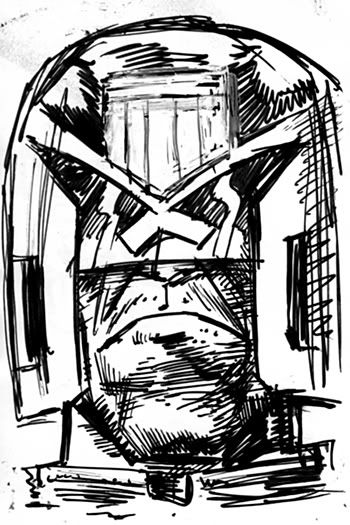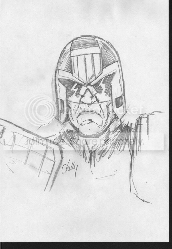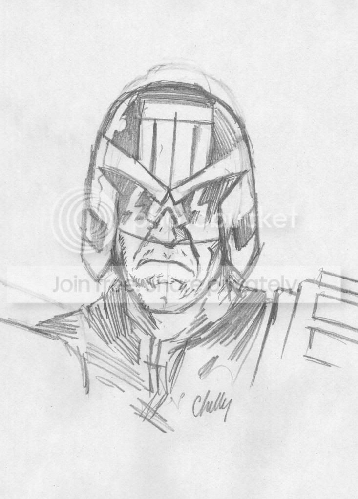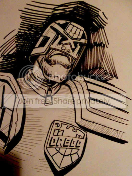 I've done an Ewins Dredd since I got a sketch of Skeemer from him at UKCAC years ago and learnt how to draw that THEN just added a helmet and bit of chin work and you had yourself a nice little Dredd sketch.
