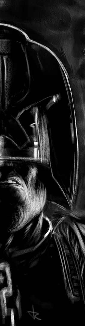 Awesome thread, some cracking Dredds on display - heres my effort. 17mins I'm afraid, never mind. God bless the chain pattern brush in Manga Studio says I. ;)