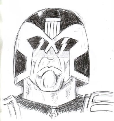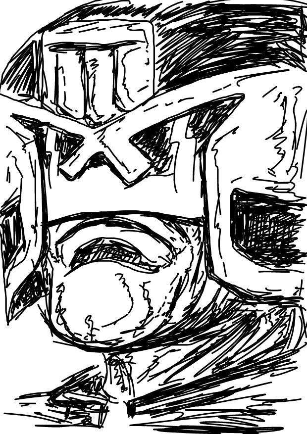 In honour of my new Bamboo, here is my first attempt at properly sketching a Dredd Head (after a bit of practice to get used to using a tablet).