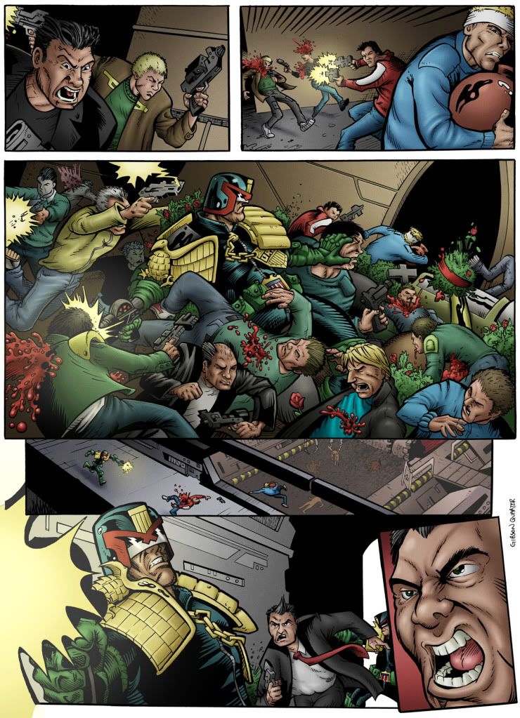 I'm currently colouring one of Gibson Quarter's Dredd sample pages, and Professor Byah is having a go at one of my own - hopefully I'll get them posted here at some point (with the other's permission, of course).