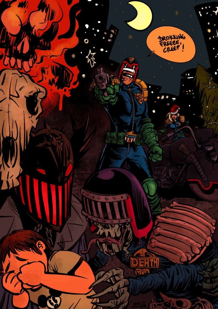 Hooray! I am proud to kick off this year's advent calendar with a little festive Dredd song for y'all! Apologies for the terrible singing and the poopy drawings but you're allowed to do that at Christmas!