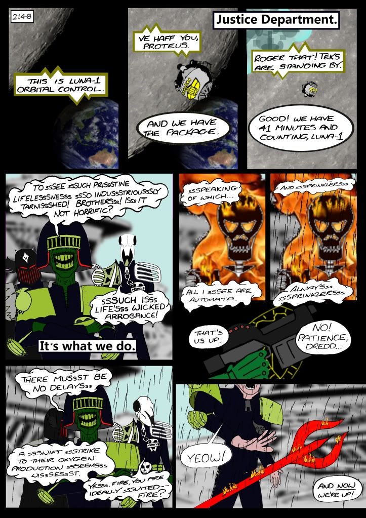 every mistake possible. Fanwank plot, cluttered layouts, clunky dialogue... and that's even before we get to the artistic skills that would make a kindergarten teacher snort out loud! And the lettering! Oh, the lettering! That's bad. That really, really sucks - and I'm the bloke what done it.
