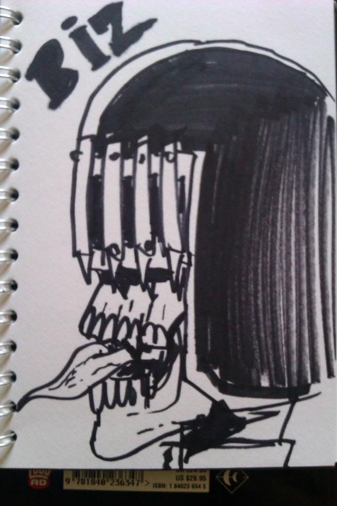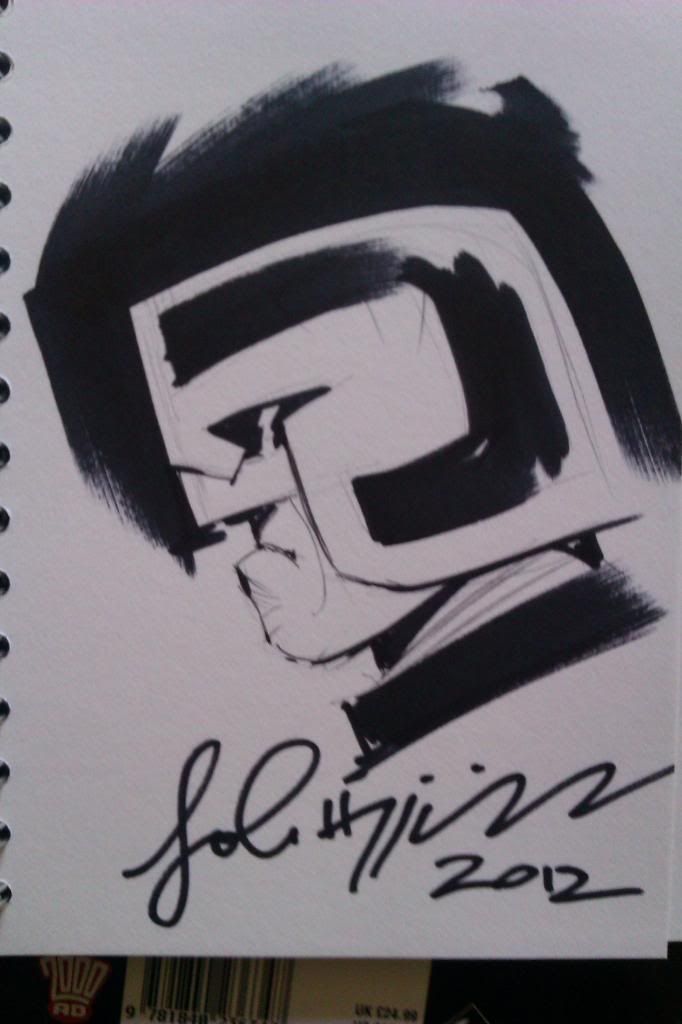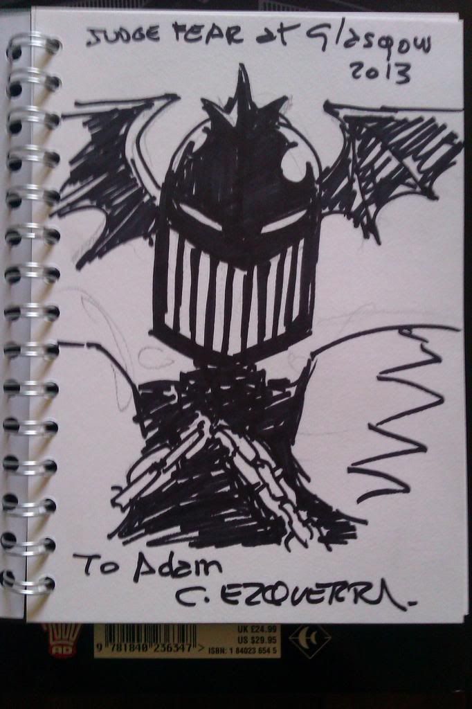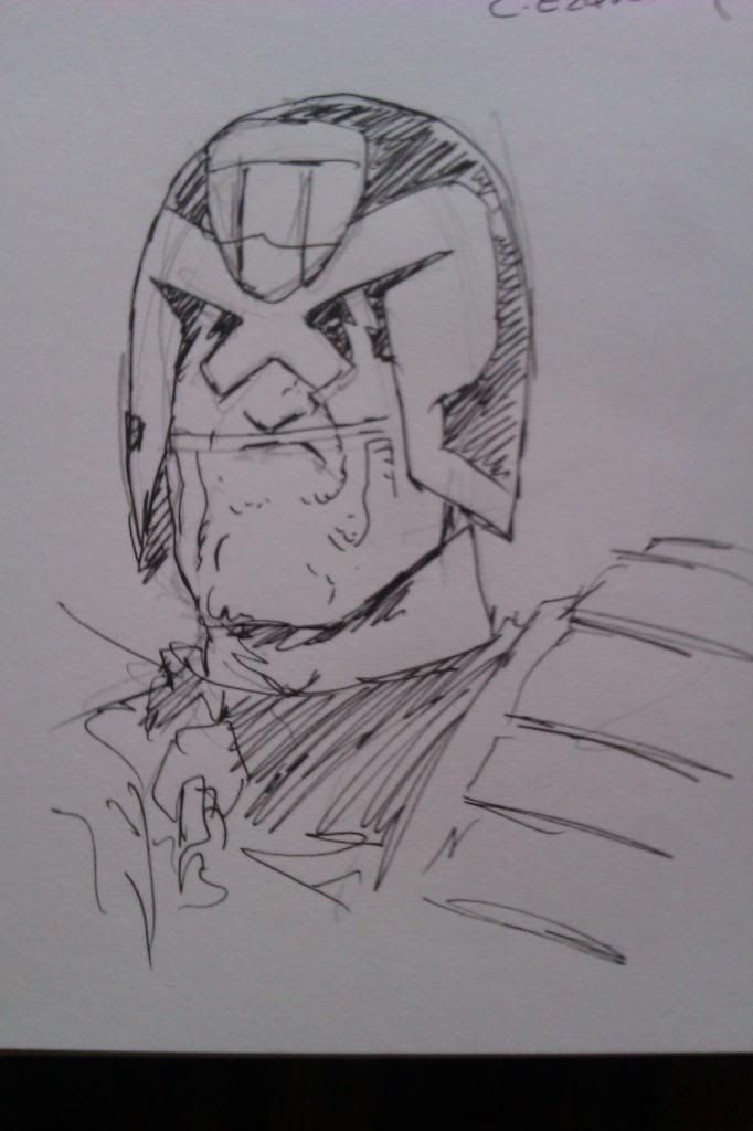 Had a great time at the Con (when I wasn't melting) and my Ezquerra sketch of Dredd is now proudly hanging on my living room wall (along with a f'ing amazing Rorsach drawing by John Higgins).