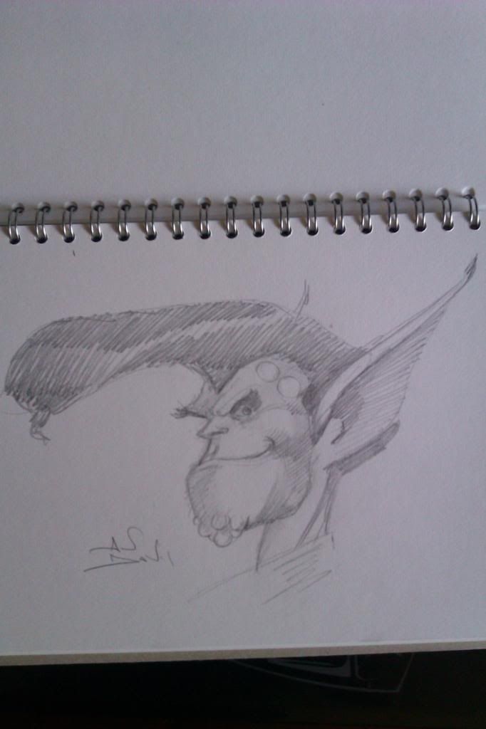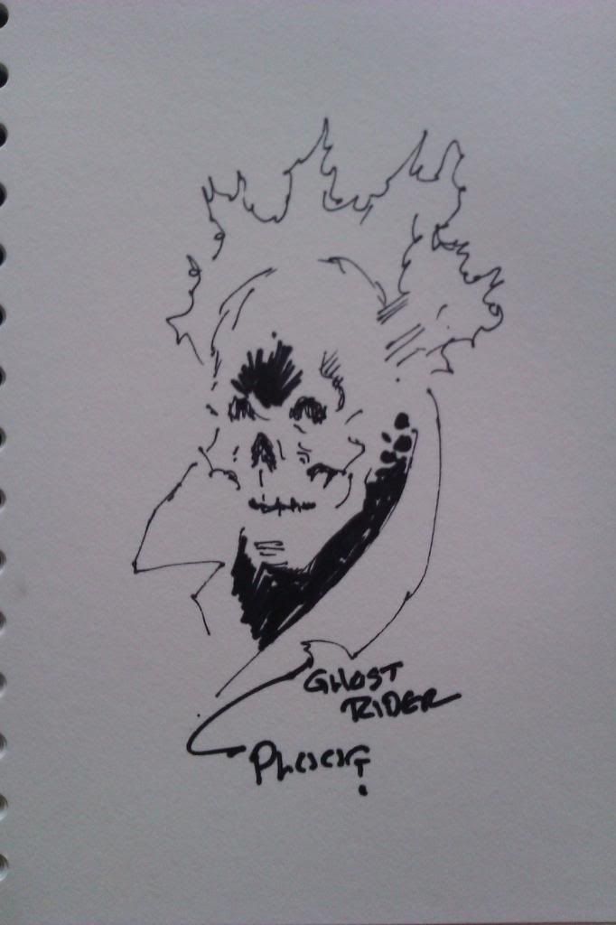 I need to scan in my Johnny sketch to show you guys as the photo I have is a little bit rubbish, I'll attach it anyways though. Luckily the Wife -was on the ball and snapped a pic of Carlos sketching it for me which is lovely to have too!