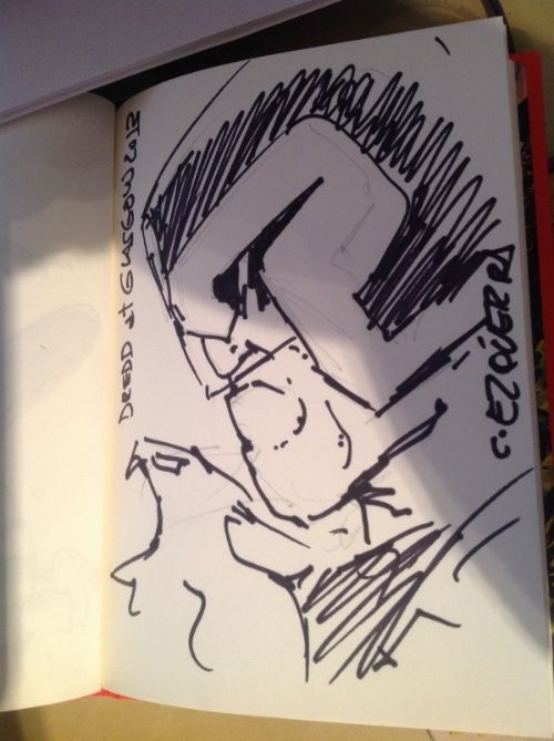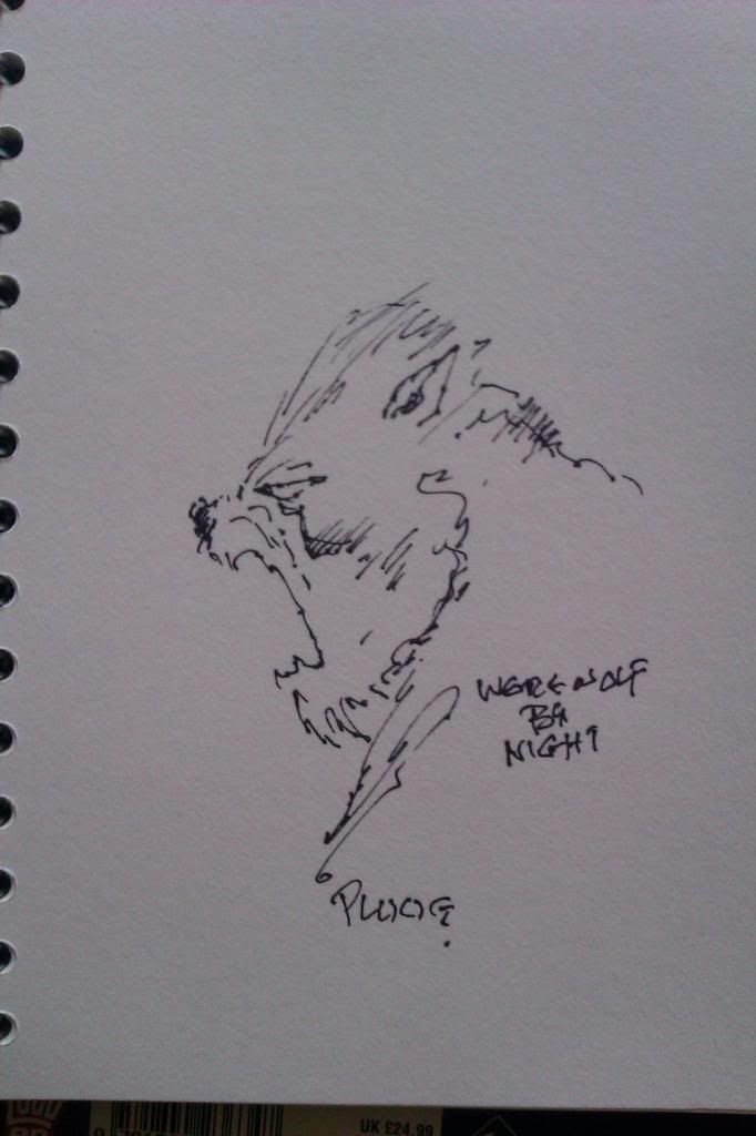 I think this is the last photo i have been able to herd from the far corners of facebook and friends phones. The talented and charming spaniard Carlos Ezquerra who will always have friends in scotland and welcome back any time. I forgot to get a sketch but id have only got johnny alpha topless and hatless for stacey so sorry stacey! it was my intention! x