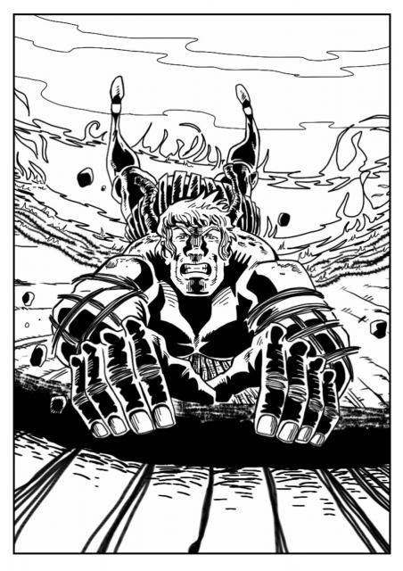Near drowned following his plunge into the icy depths of the Aegean Sea. Transformed into a true winged champion by alien 'Artist' Meriope. Transported billions of light years from Earth by skeletoid bounty-hunter Dax and sent on a mission to liberate Artisan IV from it's deranged ruler Callista. Young Icarus of Crete has not been having a good day...and it's far from over. With the majority of their group lost in battle, Icarus and Meriope are betrayed by Dax, who is revealed to have been working with Callista all along. As Meriope is taken for purposes unknown, a badly wounded Icarus (his wings destroyed by Callista) faces off with Bonehead Dax in a fight to the death...