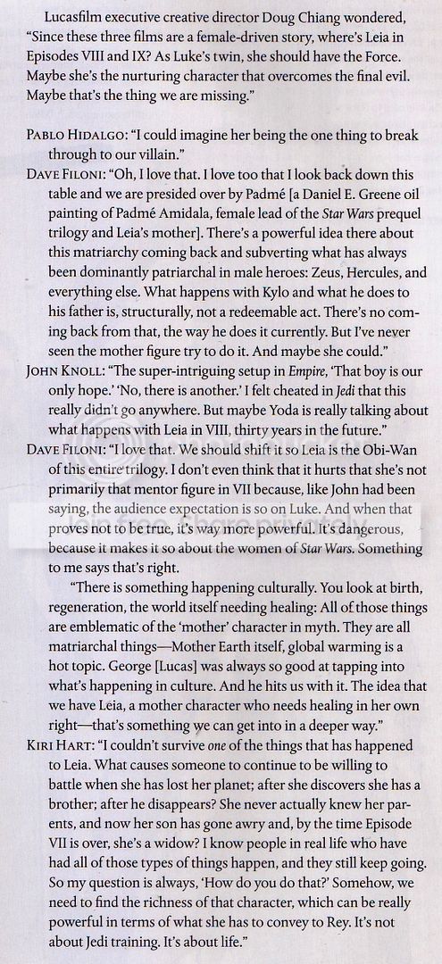 What I find funny is the last week or so fans were (deservedly) gushing over Filoni's fitting end to The Clone Wars and the recent interview where he waxes lyrical (https://www.youtube.com/watch?v=NI1SM4-9HLk) about The Phantom Menace to a bunch of SW directors, but not a peep about these quotes from the art-book that's been out several months with bits and pieces of it copy/pasted into numerous articles – quotes that would 'hang' JJA, Johnson and Kennedy etc.