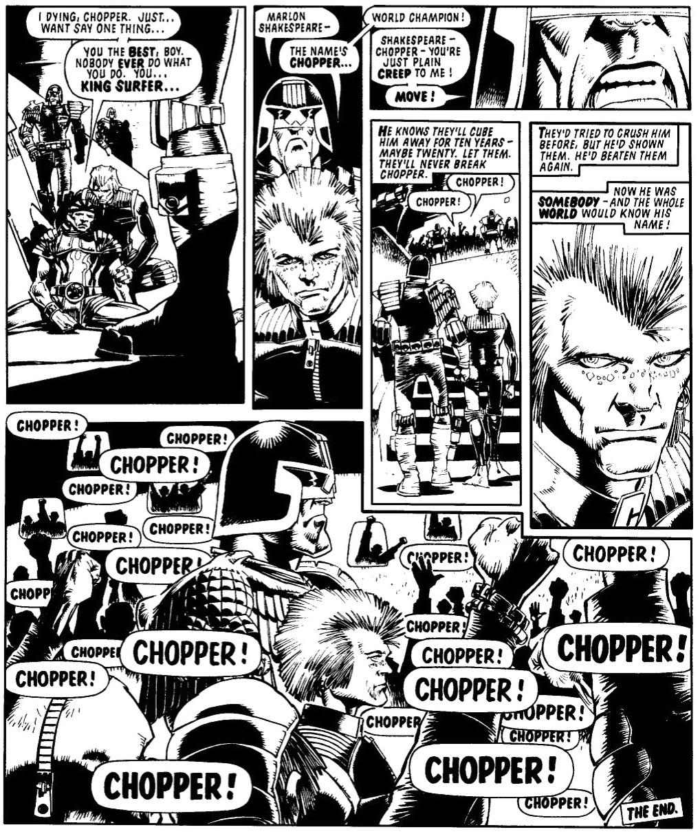 Kenny Who, 2 Ton Tony Tubbs, Chopper, the best judge tech, the best sky-surfers, the best back-ground tower-blocks, the best action posss, Rogue Trooper, The VCs. Late period Cam pancake-butt & wonky Eagle dredd.