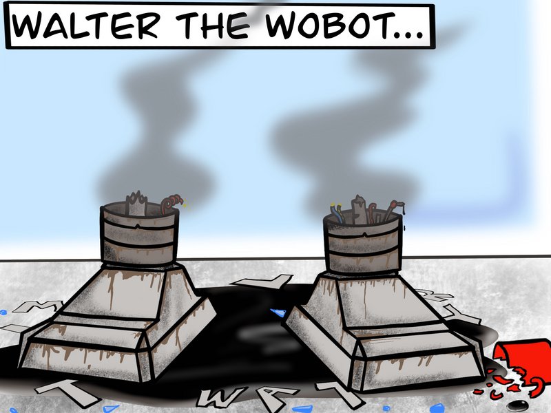 Hats off to Wooly for spotting the not-too-subtle lettering. Fun Walter fact for you all - if you take the letters of "Walter the Wobot", mix them up, add some and take some away, it spells "Iwwitating Tosspiece." Who'd a thunk?