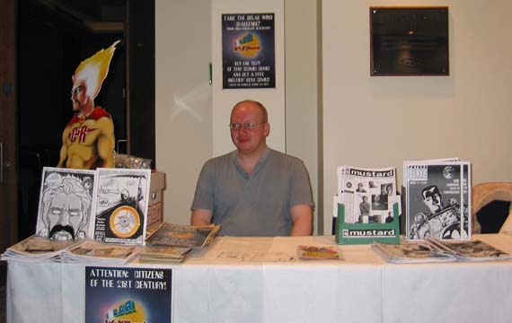 Paul Scott looking after the Solar Wind / Dogbreath / Futurequake table (This is before Dr Bob arrived, so I'm afraid theres a gap in the middle where her comics would be)