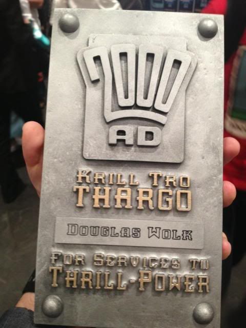 A while ago I contacted Colin about doing a commission and once he'd found a window in his busy schedule it commenced. The basic idea was to have Dredd with two Brit-Cit Judges, being me and Pete Wells and a Cal-Hab Judge, being Steve Watson doing something!