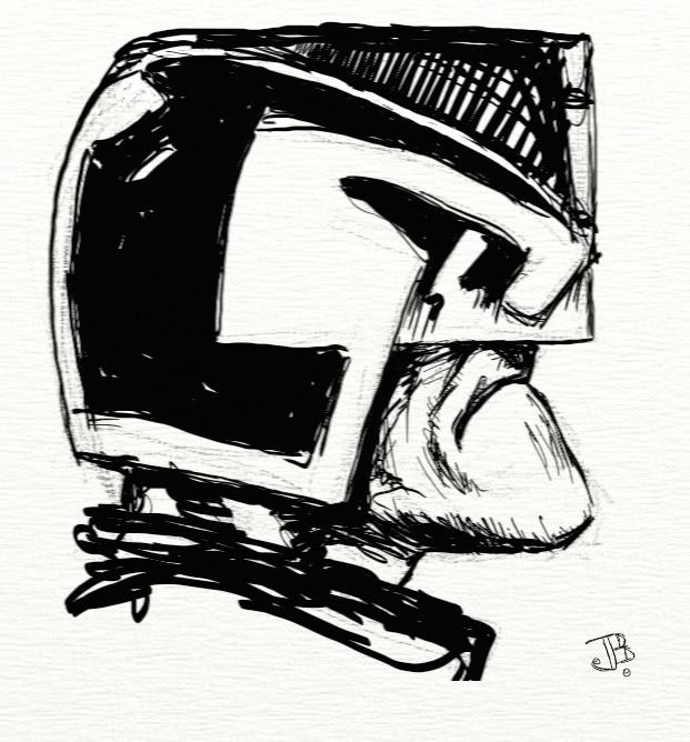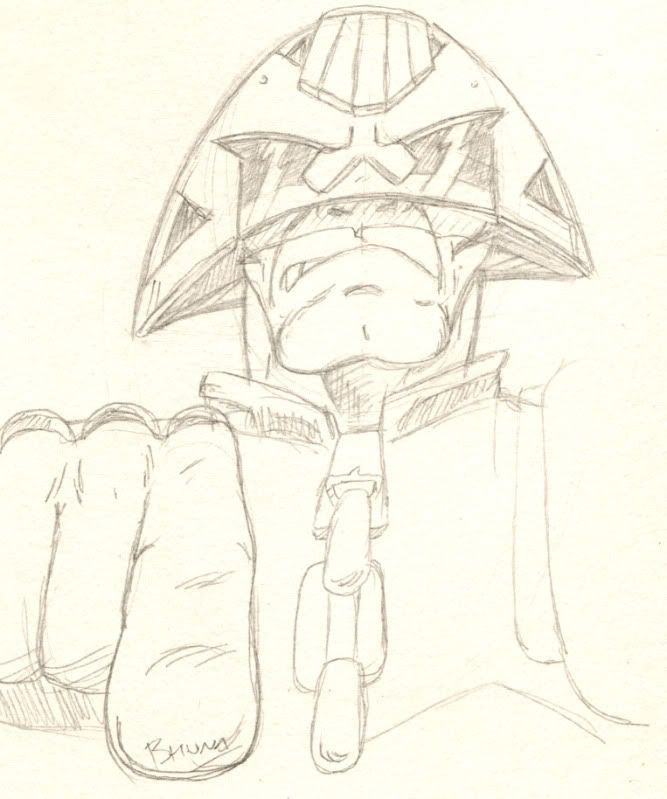 This one is actually a coupla years old, one of my first wacom doodles and the last Dredd I drew until today. I remember knocking ths one out quite quick, well within the 15 mins.
