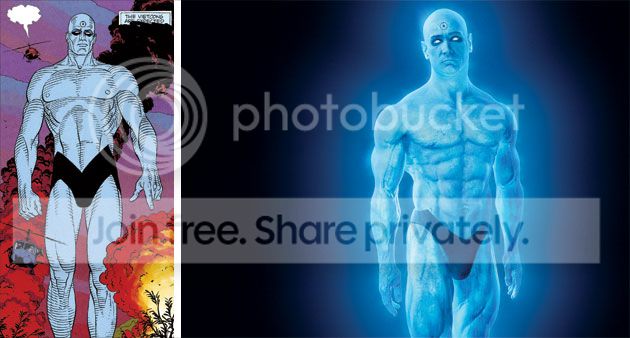 I always got a Leonardo Da Vinci illustration vibe from Manhattan in the comics - he is well built - like a perfect specimen of man. In the film he looks like a roided-up bodybuilder. There's a difference.
