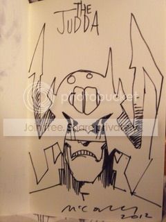 Scholar & Gentleman Mike Carroll, and my Zarjaz Gary Erskine Dredd sketch (to be framed after a trip to Ikea this Friday!)