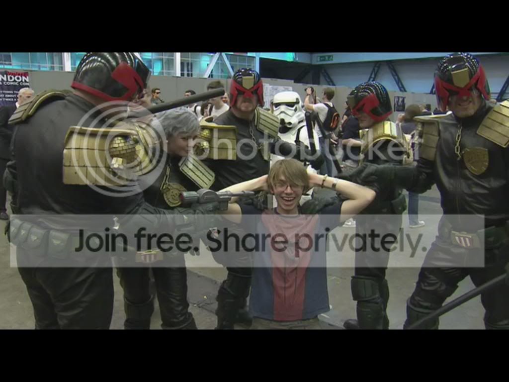 Great shot of the Judges on patrol on that Sky News article. Still bummed we missed them (God knows how!). Me and my boy are just walking behind the zombie soldier (who was really great!). I kind of noticed a camera when he was attacking my lad and then as he heads off towards the camera as we are walking away. Fame at last....