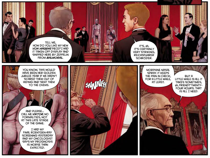 "A recent issue of 2000 AD, I noticed, contained a picture of the Queen and Prince Philip as naked, preserved corpses. Darkly funny? Shocking for shocking's sake? Utterly profane? Whatever your position, it's worth noting that this punkish, ambitious art form isn't restricted to galleries and museums. It's one you can buy into for £2.45 an issue."