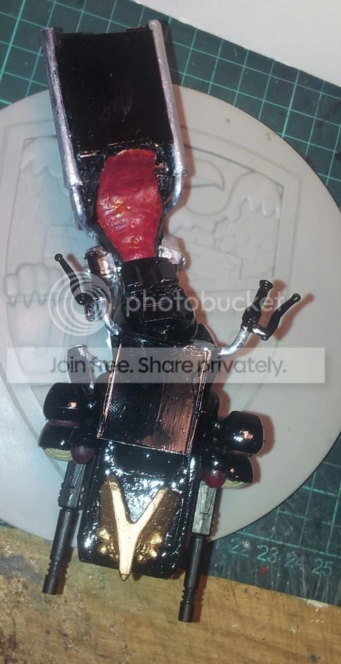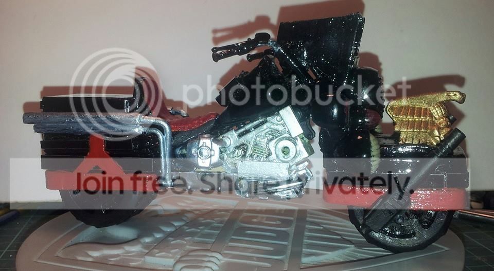 Finally got the Lawmaster finished YAY.  One question though DREDD heads. The top front screen, currently Black, I know in the comics it is lit up but what would you agree is the general colour? RED or Yellow/white?